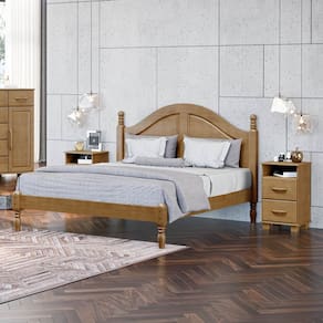 Conjunto Quarto: Cama Casal, 2 Mesas de Cabeceiras 2 Gavetas Ouro Freijó Madeira Pinus - Finestra