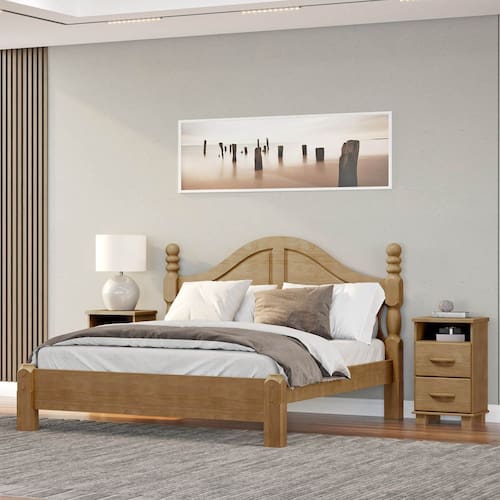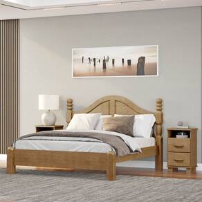 Conjunto Quarto: Cama Casal Clássica, 2 Mesas de Cabeceiras 2 Gavetas Ouro Freijó Madeira Pinus - Finestra