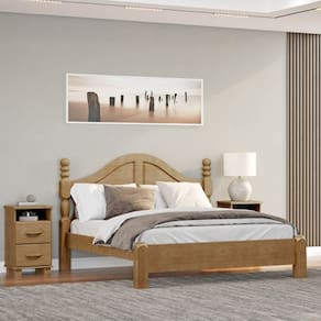Conjunto Quarto: Cama Casal Queen Clássica, 2 Mesas de Cabeceiras 2 Gavetas Ouro Freijó Madeira Pinus - Finestra