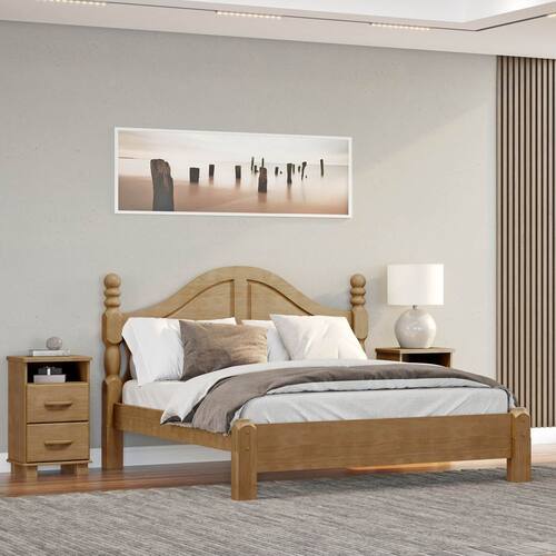 Conjunto Quarto: Cama Casal Queen Clássica, 2 Mesas de Cabeceiras 2 Gavetas Ouro Freijó Madeira Pinus - Finestra