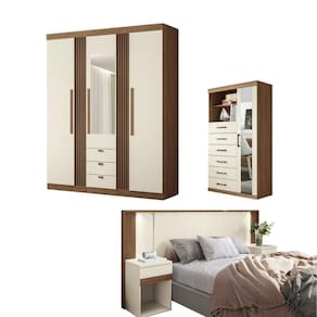 O Guarda Roupa possui quatro gavetas excelente para acomodar todas as suas roupas, contando com seis prateleiras perfeitas para guardar cobertores. Acompanha três cabideiro para pendurar as roupas com organização e .