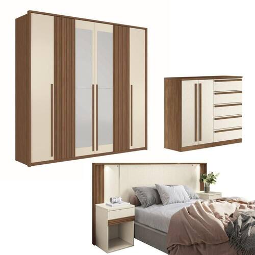 A Cabeceira contém duas mesas de cabeceira com duas gavetas que são perfeitas para organizar pequenos objetos como livros, celulares, etc.