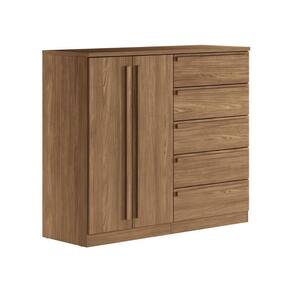 A Cômoda conta com cinco gavetas amplas para organizar todas suas roupas, duas portas e um cabideiro.