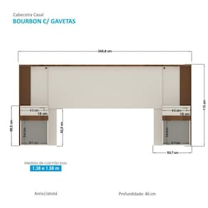 A Cabeceira contém duas mesas de cabeceira com duas gavetas que são perfeitas para organizar pequenos objetos como livros, celulares, etc.