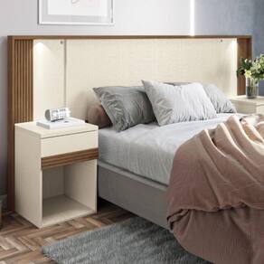 A Cabeceira contém duas mesas de cabeceira com duas gavetas que são perfeitas para organizar pequenos objetos como livros, celulares, etc.
