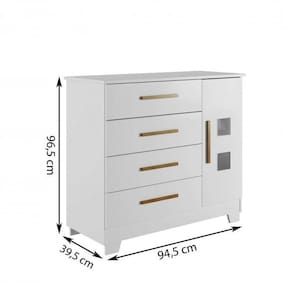 1x Cômoda 4 Gavetas 1 Porta Fly 100% MDF Branco Largura: 94 cm Altura: 96 cm Peso: 33 kg Profundidade: 39 cm Necessita Montagem: Sim