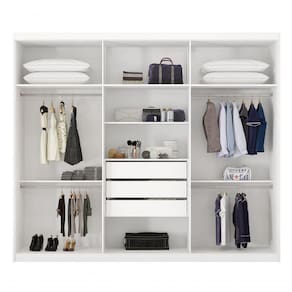 O guarda roupa valoriza o ambiente com medidas internas amplas e com espaços bem distribuídos para uma boa acomodação de roupas e objetos. Possui 6 portas de abrir e 3 gavetas, todas com corrediças telescópicas e profundidade adequada para roupas e sapatos