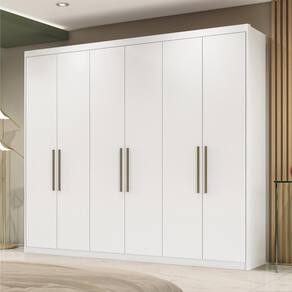 O guarda roupa valoriza o ambiente com medidas internas amplas e com espaços bem distribuídos para uma boa acomodação de roupas e objetos. Possui 6 portas de abrir e 3 gavetas, todas com corrediças telescópicas e profundidade adequada para roupas e sapatos