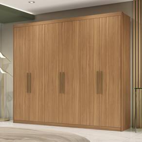 O guarda roupa valoriza o ambiente com medidas internas amplas e com espaços bem distribuídos para uma boa acomodação de roupas e objetos. Possui 6 portas de abrir e 3 gavetas, todas com corrediças telescópicas e profundidade adequada para roupas e sapatos