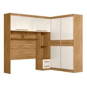 Dispõe nove prateleiras centrais para organizar travesseiros, cobertores, toalhas e objetos.