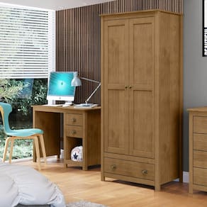 Conteúdo da Embalagem: 1 Guarda-Roupa, 1 Escrivaninha, manual de montagem e Kit Ferragem