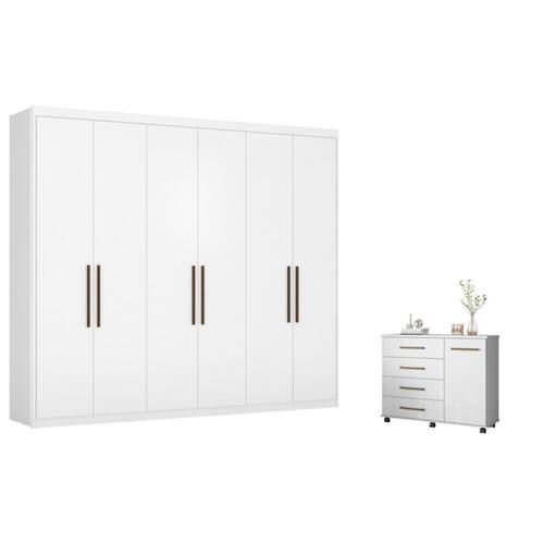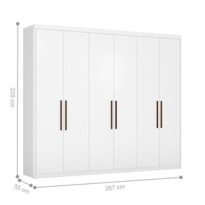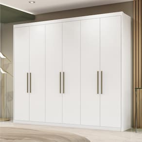 O guarda roupa valoriza o ambiente com medidas internas amplas e com espaços bem distribuídos para uma boa acomodação de roupas e objetos. Possui 6 portas de abrir e 3 gavetas, todas com corrediças telescópicas e profundidade adequada para roupas e sapatos