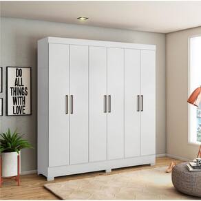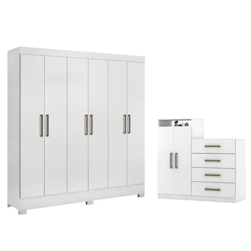 Possui 6 portas e 3 gavetas, todas com corrediças telescópicas e profundidade adequada para roupas e sapatos