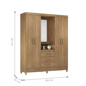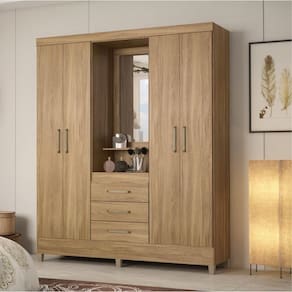 Esse guarda roupa se destaca pela usabilidade, oferecendo várias prateleiras em seu interior, além do espelho com ótima dimensão no espaço central