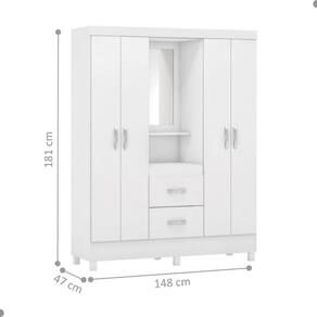Esse guarda roupa se destaca pela ótima configuração interna, e pelo espelho central, dando um toque requintado para o ambiente