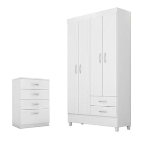 Conjunto Quarto Guarda Roupa E Comoda Udini Branco