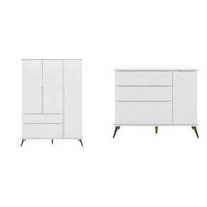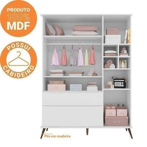 Conjunto Quarto Infantil com Guarda-roupa 3 Portas e Cômoda com Sapateira Melinda 100% Mdf Branco