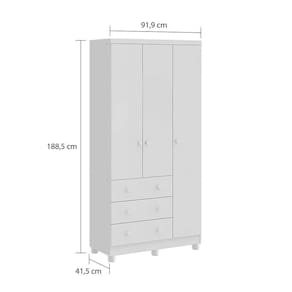 Dimensões Guarda roupa: Altura: 188,5 cm Largura: 91,9 cm Profundidade: 41,5 cm Peso: 54,28 kg