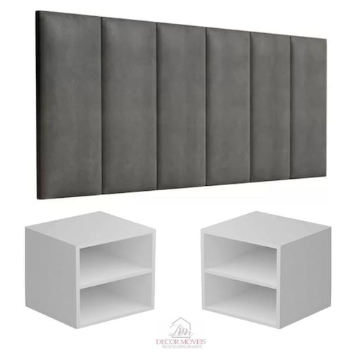 Conjunto Quarto Mesas De Cabeceira + Cabeceira De Cama 1,40 Kit cabeceira estofada 1,40cm casal + 2 mesa de cabeceira ecos
