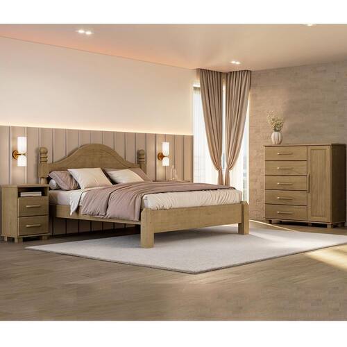 Conjunto Quarto Ouro: Cama Casal, Cômoda Sapateira e 2 Mesas Cabeceiras Freijó Madeira Pinus