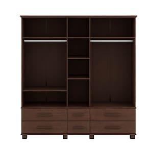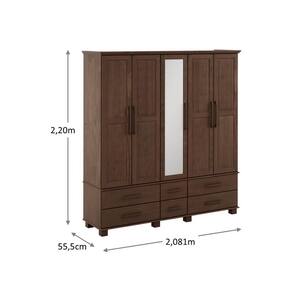 Conjunto Quarto Ouro: Guarda-Roupa 5 Portas, Cama Casal, Cômoda Sapateira e 2 Mesas Cabeceiras Café Madeira Pinus