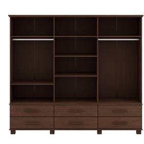 Conjunto Quarto Ouro: Guarda-Roupa 6 Portas, Cama Casal, Cômoda Sapateira e 2 Mesas Cabeceiras Café Madeira Pinus