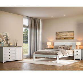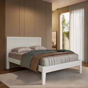 Conjunto Quarto Topázio Branco: Cama Casal, Cômoda Sapateira e 2 Mesas de Cabeceiras Madeira Pinus
