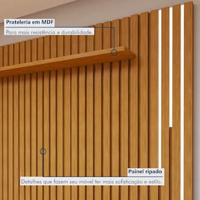 Deixe seu ambiente ainda mais incrível com nosso conjunto de móveis para sala de estar. O painel ripado com prateleira dá aquele toque moderno e elegante, perfeito para destacar sua TV e deixar suas decorações sempre à vista. Já o rack com gavetas oferece espaço de sobra para organizar tudo e esconder a baguncinha dos eletrônicos. Esse combo é a escolha ideal para quem quer renovar a sala com praticidade e muito bom gosto!