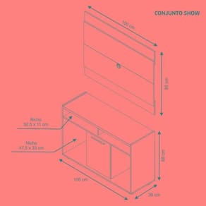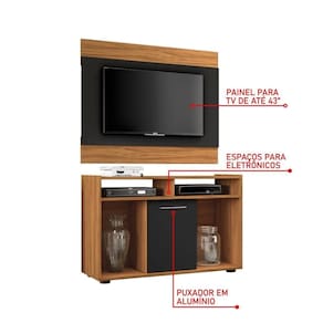 Altura: 68/85 | Indicado para TVs: 43 Polegadas | Produto: Rack com Painel | Profundidade: 35,5 | Largura: 106/105 | Quantidade de caixas: 1 | Cor: Freijó/Preto
