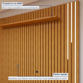 São para TV de até 75' Produto Montado: Sim Acabamento: Pintura Acabamento da Porta: Pintura Acabamento da Prateleira: Pintura Acompanha Lâmpada: Não Altura do Conjunto: 250 cm Altura do Painel: 250 cm Altura do Rack: 53,5 cm Ambiente Principal: Sala de Estar codigo_ean: 7909903978313 Complexidade da Montagem: Média: pode ser montado por mais de uma pessoa e/ou necessite de maior conhecimento para montagem Cor: Naturalle Cor do Produto: Naturalle Cor Flex: Não Escala de Brilho: Fosco Escala de Brilho da Porta: Fosco Escala de Brilho da Prateleira: Fosco Espessura do Painel: 19 cm Ideal para TVs até (Polegadas): 75 Itens Inclusos: 3 Painel Paris, 1 Rack Gaia e manual de montagem e kit ferragens Largura do Conjunto: 183 cm Largura do Painel: 183 cm Largura do Rack: 180 cm Manual de Montagem e Instalação: https://product-hub-prd.madeiramadeira.com.br/959911/documents/d8c770b5-83c0-41d0-927e-9e8601d6285553021729167161959911120836.pdf Marca: Mavaular Material da Porta: MDF Material da Prateleira: MDF Material do Puxador da Porta: MDF Material Principal: MDF/MDP Montagem Flex: Não Necessita Montagem: Sim Peso do Painel: 74,4 kg Peso do Rack: 37,7 kg Peso Máximo por Prateleira: 10 kg Possui Adega: Não Possui Espelho: Não Possui iluminação: Sim Possui Pés: Não Possui Prateleiras: Sim Possui Tomada: Não Profundidade do Conjunto: 36,5 cm Profundidade do Painel: 19.0000 Profundidade do Rack: 36,5 cm Recomendações de Uso, Manutenção e Limpeza: Limpar com flanela limpa e seca. Não usar produtos abrasivos Sistema de Montagem: Parafusos e Minifix. Suporte de TV Universal Incluso: Não Tipo de Dobradiça/Corrediça da Porta: Metálica Tipo de Puxador da Porta: Embutido