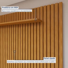 Renove seu ambiente com nosso conjunto de móveis para sala de estar, que combina estilo e funcionalidade na medida certa! O painel ripado dará um toque moderno para destacar sua TV, enquanto a prateleira oferece o espaço perfeito para suas decorações favoritas. Já o rack com portas ripadas oferece um espaço amplo para organizar seus eletrônicos e decorar como quiser. Juntos, painel e rack formam o combo perfeito.