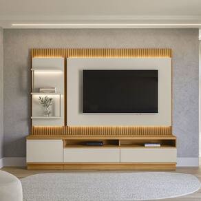 Fabricado em MDP e MDF, o Conjunto Saint Paul conta com acabamentos de alta qualidade, como puxadores metálicos embutidos, portas com dobradiças amortecidas e luminárias de LED que destacam o espaço e criam um ambiente aconchegante. O painel com detalhe ripado acrescenta um toque contemporâneo à sua sala de estar.