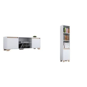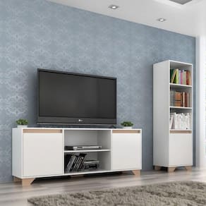 Conjunto Rack para TV até 50 Polegadas e Estante Benevello da Quiditá Móveis, composto pelo Rack 1600 e a Estante, um kit contemporâneo com um ligeiro aspecto retrô, inovando para beleza e conforto em seu ambiente, produzidos com painéis de MDP 15mm, viabilizando segurança. Acabamento: Pintura UV Altura do Conjunto: cm Ambiente Principal: Sala de Estar Escala de Brilho: Fosco Informação Complementar: 1x Rack para TV até 50 Polegadas 2 Portas 3 Prateleiras Benevello Móveis BrancoLargura: 35 cmAltura: 61 cmPeso: 30 kgProfundidade: 160 cmNecessita Montagem: Sim1x Estante 1 Porta 3 Prateleiras Benevello BrancoLargura: 35 cmAltura: 160 cmPeso: 26 kgProfundidade: 48 cmNecessita Montagem: Sim Material Principal: MDP O Conjunto Contém: Rack, Estante Possui Rodízio: Não Quantidade de Produtos: 02 Suporta Até (kg): 60 kg