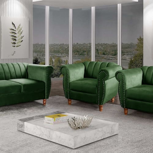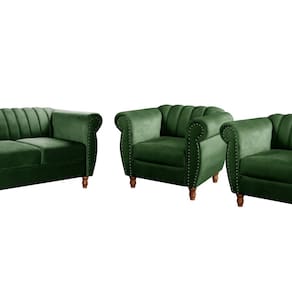 É necessário que haja uma ou mais pessoas no local para receber, desembalar, e conferir o produto. Produto Montado: Sim Acompanha Almofadas extras: Não Almofada do assento: Removível Almofada do encosto: Não Possui Altura do assento até o chão: 45.0000 Altura do Encosto: 80 cm Ambiente Principal: Sala de Estar codigo_ean: 7909903799994 Complexidade da Montagem: Baixa: pode ser montado por uma pessoa sozinha Cor: Verde Cor do Produto: Verde Estilo de Braço: Braços Redondos Informações Complementares: 120Kg por acento Itens Inclusos: 1 Sofá 2 Lugares Realeza + 2 Poltronas 1 Lugar + Pés Necessita Montagem: Sim Origem do Produto: Nacional Peso: 50 kg Pet Friendly: Não Possui Percintas Elásticas: Sim Possui Pés: 04 Possui Rodízio: Não Quantidade de Itens: 3 Recomendações de Uso, Manutenção e Limpeza: Limpeza e cuidados: pode ser utilizado aspirador de pó, escova com cerdas macias ou limpeza a seco. Não utilizar produtos químicos, abrasivos ou limpeza a vapor. Evitar exposição prolongada ao sol. Sistema de Montagem: Fixar os Pés Suporta Até (kg): 120 kg Tecido Predominante: Veludo Tipo de Encosto: Fixo Tipo de Mola: Molas Ensacadas (Molas ensacadas)