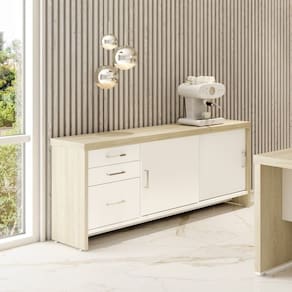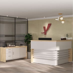 Crie uma recepção acolhedora e profissional com o conjunto que combina funcionalidade e estilo. O balcão de atendimento é o ponto focal, projetado para receber clientes com elegância e eficiência. Construído em tamburato, oferece durabilidade e uma superfície espaçosa para atender às necessidades de recepção. O balcão adicional com 3 gavetas proporciona armazenamento essencial para documentos e suprimentos, mantendo o espaço organizado e acessível. Este conjunto é ideal para empresas que valorizam uma 1ª impressão impactante e um ambiente de trabalho organizado e funcional. Suporta Até (kg): 50 kg Acabamento: BP Altura do Conjunto: 114 cm Ambiente: null Ambiente Principal: Escritório Cor: Carvalho/Branco Informação Complementar: 1x Armário para Escritório Baixo 2 Portas 3 Gavetas Tamburato Carvalho/Branco Largura: 160,5 cm Altura: 75 cm Peso: 70 kg Profundidade: 44 cm Necessita Montagem: Sim