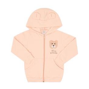 Para um passeio tranquilo ou passar o domingo na casa da dinda para muitas brincadeiras, o conjunto moletom na cor rosa pó é a escolha ideal para sua pequena fashionista. A jaqueta possuí fechamento em zíper, capuz com orelhas e aplique artesanal de ursinho frontal no lado esquerdo de quem usa. A calça possuí elastano na cintura e na canela, assim o conforto esta garantindo e a tarde de brincadeiras também.\n
