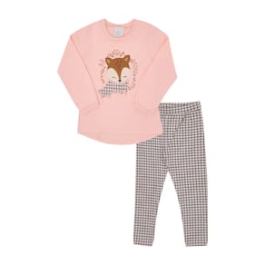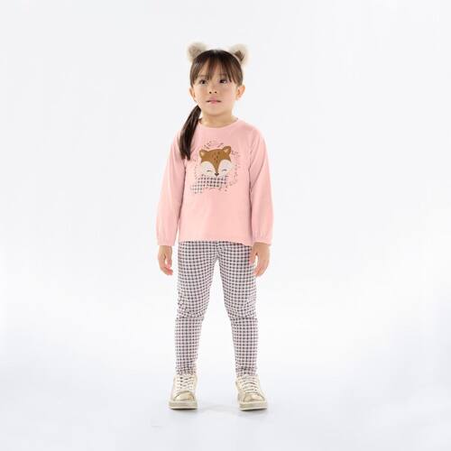 Conjunto fofinho e fashion para sua garotinha poder usar no dia a dia ou em uma passeio especial na casa da vovó. Composto por uma blusa na cor rosê com elastano no punho e estampa frontal de raposa em aplique bordado, a calça legging em xadrez rosê é confortável e quentinha para sua pequena poder brincar e se divertir a vontade sem medo e com segurança.\n