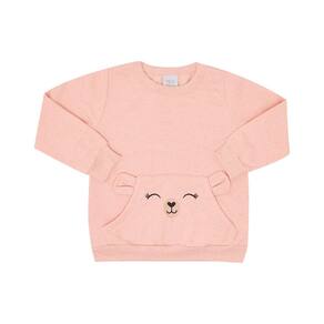 Fofinho e ideal para meia estação, a vovó irá amar se sentir abraçada pela sua pequena ursinha. O conjunto confeccionado em moletom linho na cor rosê, possuí detalhe no blusão com bordado de ursinho frontal junto dos bolsos modelo canguru. A calça possuí elastano na cintura e canela. Uma ursinha dessas da vontade de não largar mais!\n