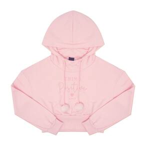 Fofinho e quentinho para as meninas curtirem todos os momentos especiais com este conjunto. Ambos confeccionados em moletom na cor rosê. O blusão possuí a barra larga, capuz com cadarço de pom pom para ajustar, aplique bordado frontal com escrita "Coisa positiva meninas". A calça possuí elastano no cós e na barra com bolsos laterais.\n