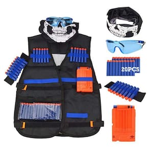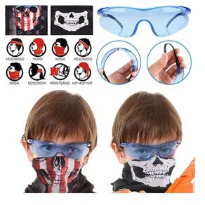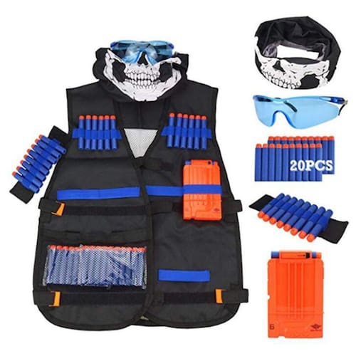 KIT ROUPAS PARA ALVOS NERF: COLETE, ÓCULOS, MÁSCARA, MUNHEQUEIRA, DARDOS E PENTE DE DARDOS.