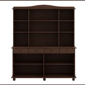 Conjunto Rubi: Cristaleira, Balcão 4 Portas, Mesa 2 Bancos 2 Cadeiras Café Madeira Pinus - Finestra