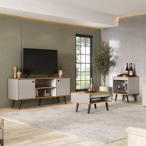 Deixe sua sala mais moderna e funcional com o Conjunto Tóquio! Composto por rack para TV, mesa de centro e mesa de apoio, ele oferece praticidade e estilo para o seu ambiente.