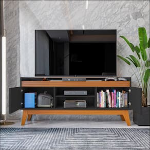 Nosso conjunto Astúrias veio para te surpreender, com uma ótima qualidade e um designer sofisticado! Nosso conjunto é composto pelo rack Astúrias que comporta uma TV de até 50 polegadas, fabricado em MDP/MDF, uma prateleira ideal para eletrônicos e objetos de decoração, com ripado frontal, portas articuladas, pés retro em MDF e pintura UV e um lindo Buffet com estrutura em MDP, portas articuladas, prateleiras internas, tampo superior com acabamento ripado, portas em MDF e pintura UV. Surpreendente não acha?!