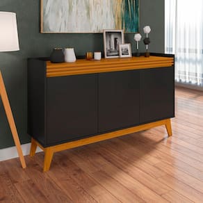 Conjunto Sala de Estar Buffet e Rack com Painel Ripado 136cm - Preto