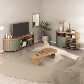 Crie uma sala de estar completa e harmoniosa com este elegante conjunto Artely! Com peças sofisticadas e funcionais, este conjunto oferece o equilíbrio perfeito entre organização, beleza e praticidade. Ideal para quem busca um ambiente acolhedor e moderno, ele transforma sua sala em um espaço mais agradável e convidativo. As peças combinam entre si com design, cores e acabamentos coordenados, criando uma composição visualmente equilibrada e charmosa. O acabamento é resistente e agradável ao toque, garantindo durabilidade e elegância. Feito com materiais de alta qualidade, este conjunto é a escolha ideal para quem deseja unir estilo, conforto e funcionalidade em um único ambiente. 1 unidade RACK ARTELY MAGNUM - CARVALHO/OFF WHITE-MENTA (4700)1 unidade BUFFET ARTELY MAGNUM - CARVALHO/OFF WHITE-MENTA (4737)1 unidade MESA CENTRO ARTELY MAGNUM - CARVALHO (4733)