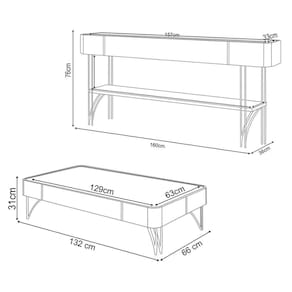 Mesa de Centro: 132 cm x 31 cm x 66 cm.