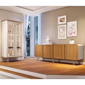 Conteúdo da Embalagem: 1 Cristaleira, 1 Buffet, 1 Aparador, 1 Mesa de Centro.