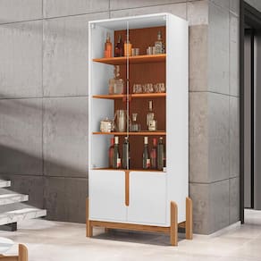 Elaborado em MDF, MDP. Laterais em MDF 25mm, portas e base MDF 15mm. Tampo e prateleiras MDP 15mm.