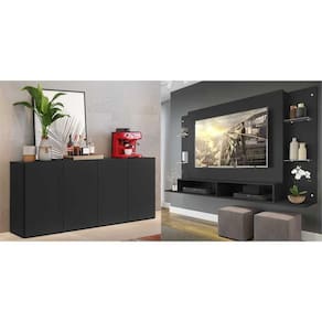 O Conjunto Sala de Estar Painel TV 60" e Aparador Helena Multimóveis é uma escolha inteligente e super em conta para deixar o seu ambiente bonito e completo. Produzido em MDP com acabamento acetinado (cerca de 20% de brilho), que garante maior durabilidade, resistência e facilidade na limpeza, possui painel para TV de até 60 (suporta até 28 Kg) com espaçamento para a passagem dos fios, o que deixa um visual clean e os cabos organizados. Conta com 4 prateleiras em vidro, que deixam o móvel mais requintado e 2 nichos para acomodar os equipamentos eletrônicos. O aparador com 4 portas, possui um excelente espaço interno para organizar seus pertences (as prateleiras internas suportam 5 Kg cada e o tampo 10 Kg).