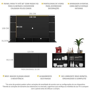 Painel TV - Altura: 108 cm | Largura: 191 cm | Profundidade: 31,5 cm